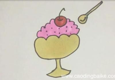 发布时间:1小时前1.首先我们先把杯子上半部分画出来,接着画杯子底座,2.再把沙冰画出来,把樱桃画出来,再在旁边画上勺子,3.最后给沙冰画上小点点,就可以开始上色啦,4.把杯子和勺子用淡黄色涂满,沙冰用粉色涂满,樱桃用红色涂满 。【沙冰的简笔画】...