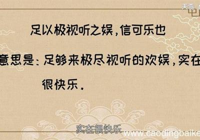 发布时间:1小时前【足以极视听之娱信可乐也翻译 翻译足以极视听之娱信可乐也】“足以极视听之娱,信可乐也”的意思是:足够来极尽视听的欢娱,实在很快乐 。该句出自东晋时期著名书法家王羲之所著的《兰亭集序》,东晋穆帝永和九年三月三日,王羲之与谢安、孙绰等四十一位军...