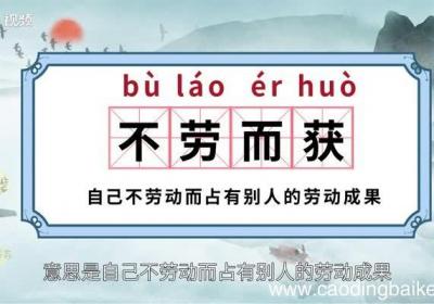 发布时间:13小时前【读音】 bù láo ér huò【释义】 自己不劳动而占有别人的劳动成果 。【故事】 从前,有一只乌鸦非常贪吃 。有一天,一个小孩拿着香喷喷的豆饼,乌鸦闻到了香味,就飞到孩子头上,用力的啄孩子的头,孩子为了保护头部,把饼扔在了地上 。乌...