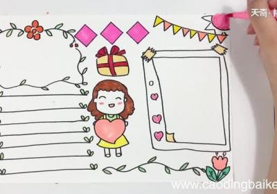 发布时间:13小时前【教师节爱心手抄报 教师节爱心手抄报画法】1.首先在中间画三个菱形边框,再画一个手捧爱心的小女孩;2.然后画一个写字本状的边框,左边画横线和树枝连起来的边框,画上横线;3.再画一些小花、树叶,一个礼物和彩旗、太阳这些装饰物;4.最后涂上相应...