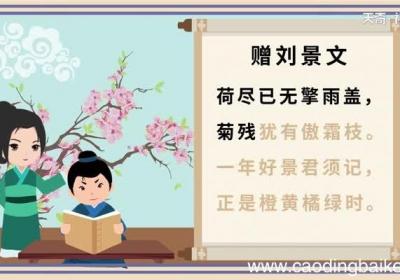 发布时间:4小时前zèng liú jǐng wén——sū shì赠刘景文(古诗朗诵)——苏轼hé jìn yǐ wú qíng yǔ gài,jú cán yóu yǒu ào shuāng zhī 。荷尽已无擎雨盖,菊残犹有傲霜枝 。【?赠刘景文古诗朗...