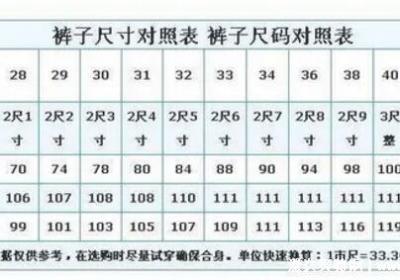 男士裤子尺码对照表,32码对应的腰围是2尺5(尺码腰围数字对应)[db:描述]...