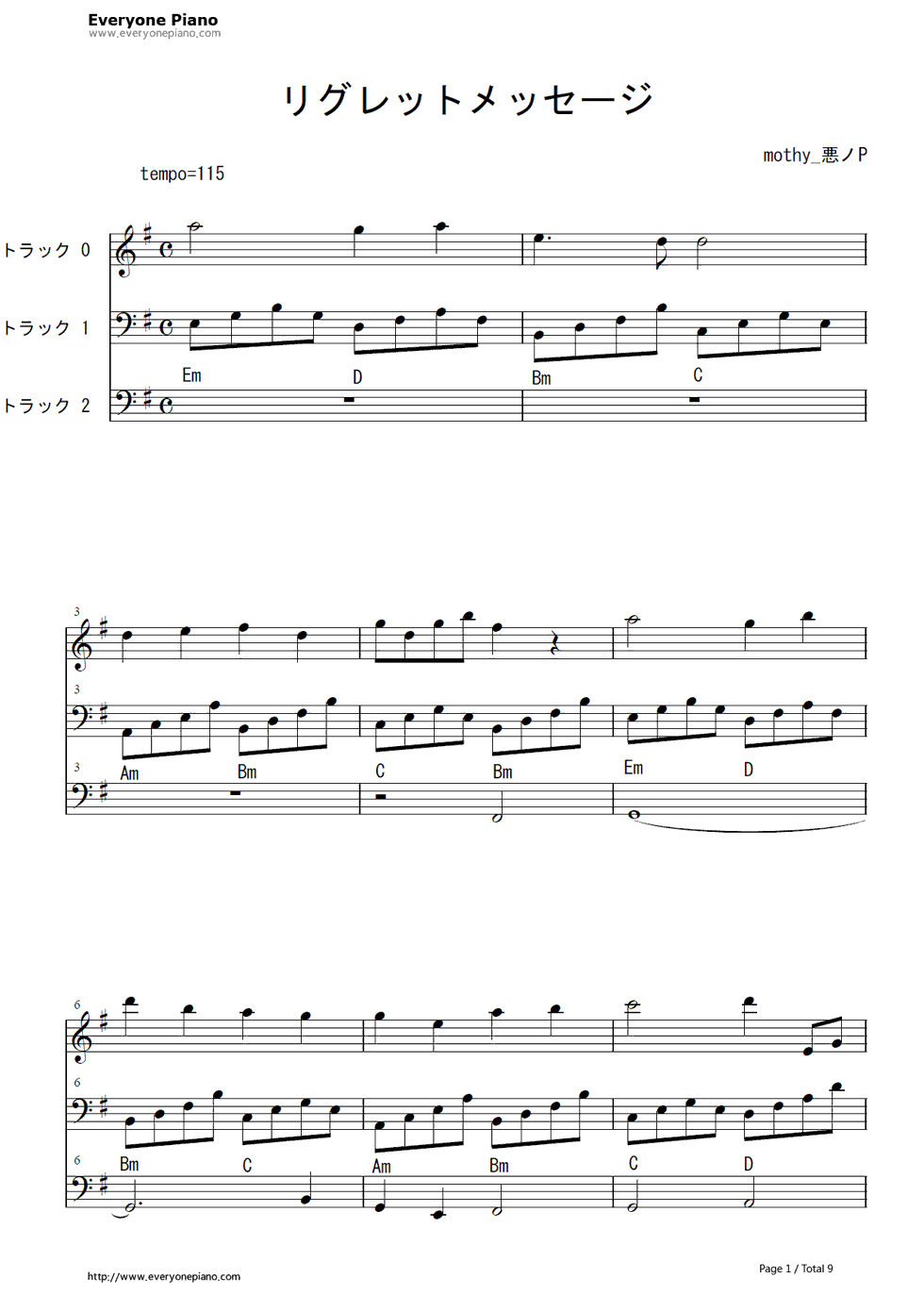 歌词下方是リグレットメッセージ钢琴谱,欢迎大家使用。 リグレットメッセージ歌词: 作词:悪ノP 作曲:悪ノP 编曲:悪ノP 演唱: 镜音リン