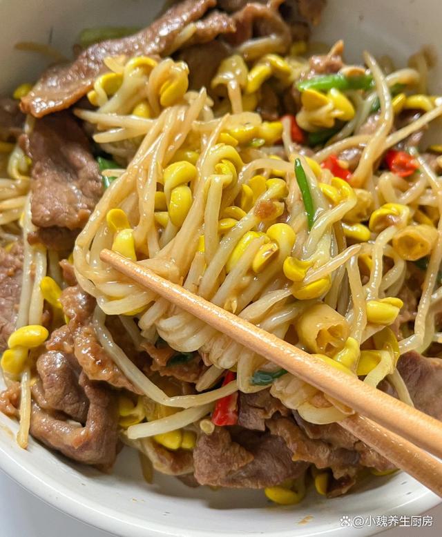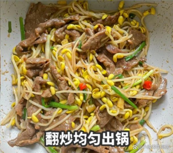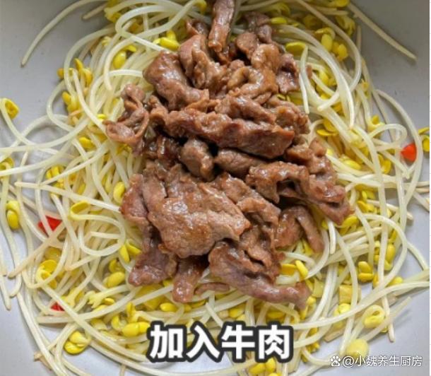 嘿,各位美食爱好者、厨房小能手,还有对美食文化情有独钟的朋友们,今儿咱们来聊聊一道简单又美味的家常菜——豆芽炒牛肉。这道菜啊,不仅色泽诱人,口感更是清新爽口,牛肉的鲜香与豆芽的脆嫩完美融合,让人一吃难忘。话不多说,咱们这就开讲,一起动手做做看!冬季,牛肉和它是绝配,简单省事,营养美味,内行人经常吃它。  进入寒冬,冬天天气非常冷,每次都不想出门,最近室外温度非常低,这个时候需要多吃一些温补的食材,牛肉绝对是不能缺少的。牛肉是肉类之一,牛腩和牛里脊最受欢迎,牛肉可以做成许多美食,今天准备搭配豆芽菜制作一道美味的家常菜——豆芽炒牛肉,几分钟就出锅,肉质鲜嫩,别不懂吃。 【豆芽菜炒牛肉的食谱解析】 材料准备首先,咱们得把材料备齐了。这道菜的主角自然是牛肉和豆芽,配角则有葱、姜、蒜、生抽、老抽(上色用,一点点就行)、料酒、盐、糖、胡椒粉、淀粉,还有食用油。牛肉:200克,选那种带点肥的牛里脊最好,肉质细嫩,炒出来更香。豆芽:300克,新鲜的绿豆芽最好,洗干净沥干水。葱:一根,切段。姜:一小块,切片。蒜:三四瓣,切片。生抽:两勺,调味提鲜。老抽:小半勺,上色。料酒:一勺,去腥增香。盐:适量,根据个人口味调整。糖:小半勺,提鲜。胡椒粉:少许,去腥增香。淀粉:一勺,腌牛肉用,让肉质更嫩滑。食用油:适量,炒菜用。 制作步骤 腌制牛肉:牛肉切成薄片或者细条,放入碗中,加入一勺生抽、一勺料酒、少许胡椒粉、一勺淀粉,抓匀腌制15分钟。这一步很重要,能让牛肉炒出来又嫩又滑。处理豆芽:豆芽洗净后沥干水分,尽量去掉根部的须,这样吃起来更清爽。爆香调料:热锅凉油,油热后放入葱姜蒜,小火炒出香味。记住,火别太大,别把调料炒糊了。 炒牛肉:调料炒香后,转大火,油温升高后下入腌好的牛肉,快速翻炒至牛肉变色,大约需要1-2分钟。牛肉一变色就盛出来,别炒老了,不然肉质会变硬。 炒豆芽:牛肉盛出后,锅里留底油,放入豆芽,大火快速翻炒。豆芽很好熟,炒个半分钟到一分钟就差不多了,加点盐调味。