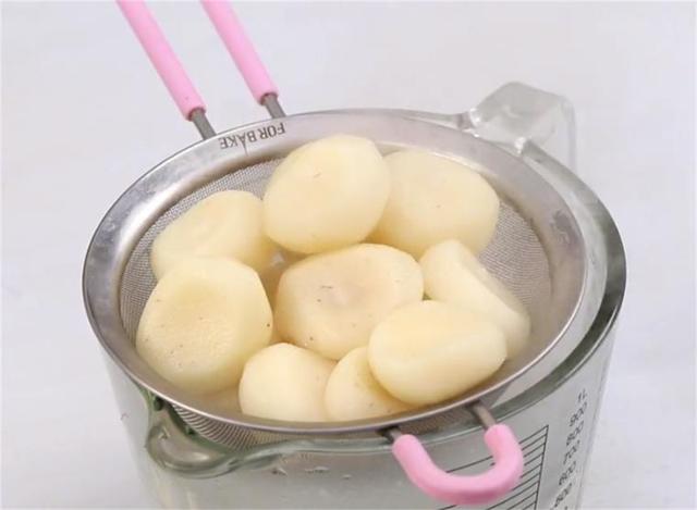 1.奶锅里倒一些水,煮至沸腾,再倒入去皮的马蹄,煮3到4分钟。