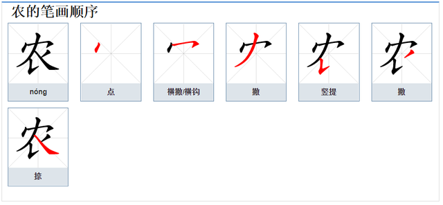 农的部首是秃宝盖。 农的简介 农(拼音:nóng)是汉语通用规范一级字(常用字) ,最早字形见于商代甲骨文 。农的古字形字状似一个人手持工具在山林草地耕作,本意指耕作,引申泛指农事、农业,又指农民。古时亦有田官、勤勉之意。 农的字形结构 农的结构是合体字;独体结构。部首是(冖),笔顺读写:点、横撇/横钩、撇、竖提、撇、捺,共6画。