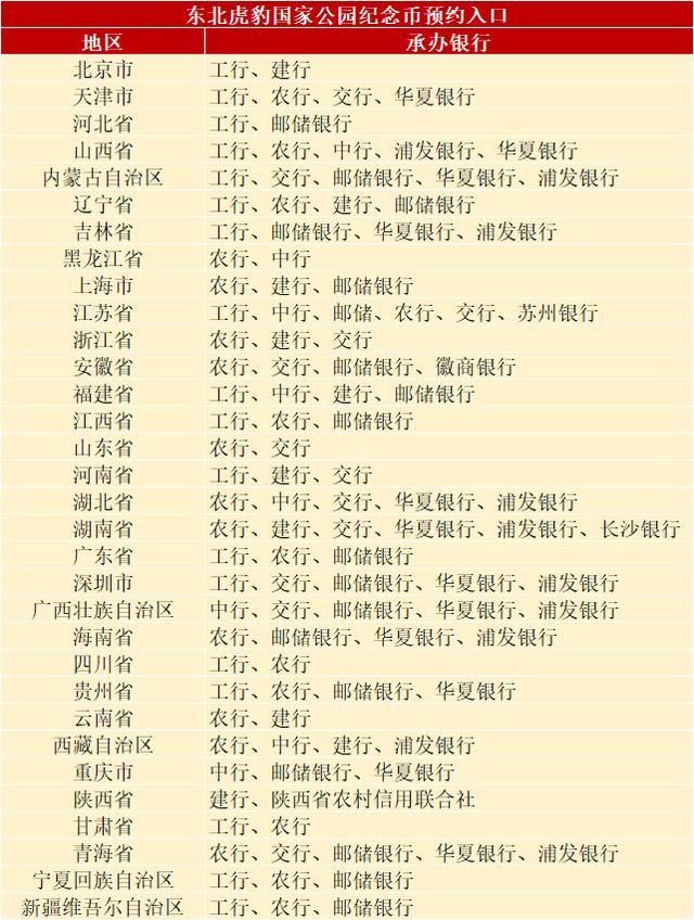 10元东北虎豹国家公园纪念币即将预约! 目前,已有多省陆续发布公告,确定这枚10元新币将在8月27日22:00开始预约。 这枚新币已经提前爆火,会有一定的预约难度,百科网已经整理了预约安排和预约入口,藏友们可以提前准备。 东北虎豹纪念币国家公园系列的第三枚——东北虎豹国家公园纪念币即将预约。 这枚普通纪念币的面值是10元,材质为双色铜合金,共发行6000万枚,可以等值兑换和等值流通。 值得一提的是,去年两枚公园币,均发行8000万枚,东北虎豹币为缩量发行。由于缩量,今年的新币特别火爆,已经吸引了不少藏友的注意。 该系列一共计划发行5枚,接下来每年都会发行1枚。 多省发布公告随着新币预约的临近,各地开始陆续发布纪念币的预约公告。摘自: www.ws46.com 目前一共4省发布公告,依次为辽宁、安徽、浙江和海南。 在各地公告中,不仅公布了当地的预约安排,还有具体的额度分配情况。 值得一提的是,各地预约安排全部相同,我们也能基本判断,全国各地将统一时间开约! 首先是预约时间,东北虎豹币定于8月27日晚上22:00预约。 大家一定记得准时参与。 此外,各地的安排中,都取消了线下预约,只有一次线上预约的机会。 同时,这枚新币每人可以预约20枚,还能够代领5人,单人最多能兑换120枚! 各地具体的额度分布,大家可以去当地分行公告一栏查看。 比如查看浙江地区的额度,可以直接进入中国人民银行浙江分行官网,在公告信息中找到新币的公告,进入即可查看各地分配数量信息。 预约入口来了此前,央行已经发布公告,确定了各地的预约银行。 每个地区都由多家银行负责预约。 各行均有多个预约入口,包括官网、软件端等。这些入口已经可以提前进入。 以工行为例,在首页显眼位置即可直接进入。一般来说,搜索“预约纪念币”即可找到对应入口。 值得一提的是,现在还没到预约时间,所以进去看到的可能还是龙年币钞的预约页面,或者干脆提示暂无预约信息。 没关系,过几天这个入口会直接覆盖更新。 大家可以提前收藏保存好预约入口,到时候直接进入预约就行了。 |