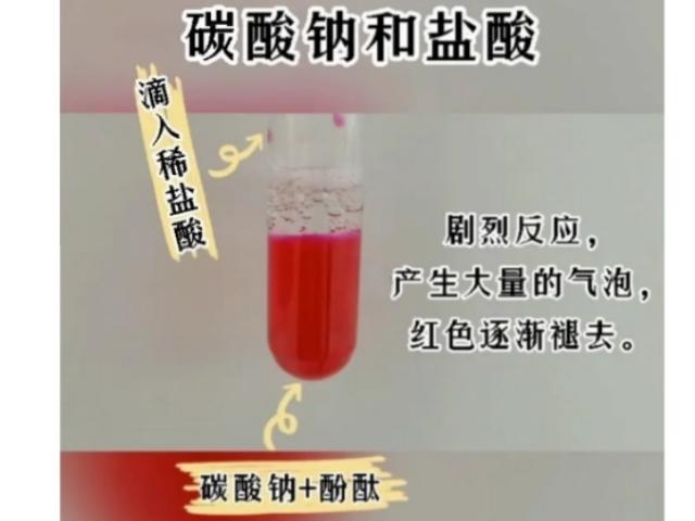 稀盐酸和碳酸钠反应的现象为:刚开始无气泡产生,随着盐酸的量逐渐增多,溶液中将产生气泡。 具体介绍: 稀盐酸和碳酸钠反应的化学方程式(盐酸量的不一样,所得的结果也不一样) 碳酸钠与少量盐酸反应方程式是: 。 碳酸钠与足量盐酸反应方程式是: 。 原理:碳酸钠先和盐酸生成碳酸氢钠和氯化钠,等全部转化为碳酸氢钠后,生成的碳酸氢钠又和多的盐酸反映,生成氯化钠和水和二氧化碳,二氧化碳从水中逸出,故产生气泡。 稀盐酸介绍 稀盐酸即质量分数低于20%的盐酸,溶质的化学式为。稀盐酸是一种无色澄清液体,呈强酸性。有刺激性气味,属于药用辅料,pH值调节剂,应置于玻璃瓶内密封保存。主要用于实验室制二氧化碳和氢气,除水垢,药用方面主要可以治疗胃酸缺乏症。 稀盐酸与盐酸区别如下:(www.ws46.com) 性质不同:盐酸挥发性强;稀盐酸挥发性弱;盐酸性强;稀盐酸酸性弱。 气味不同:盐酸腐蚀性强;稀盐酸腐蚀性弱;盐酸刺激性强;稀盐酸刺激性弱。 浓度不同:稀盐酸,即质量分数低于20%的盐酸。盐酸质量分数最高才能达到37%。 需要注意的是,盐酸具有腐蚀性,不要直接接触。 碳酸钠介绍 碳酸钠是碳酸重氮盐,化学式为Na2CO3。它也被称为苏打晶体,苏打灰,洗涤苏打。这种无机化合物是水溶性的,溶于水后会形成碳酸和氢氧化钠。纯净形式为白色粉末,无臭。它是强碱,可作为抗酸剂。 在碳酸钠生产过程中,二氧化碳和氨被送入冷的氯化钠饱和溶液中。在发生的反应中,形成碳酸氢钠,该碳酸氢钠在钠离子的存在下仅非常微溶,几乎完全沉淀。通过过滤将其除去并点燃以产生碳酸钠。 |