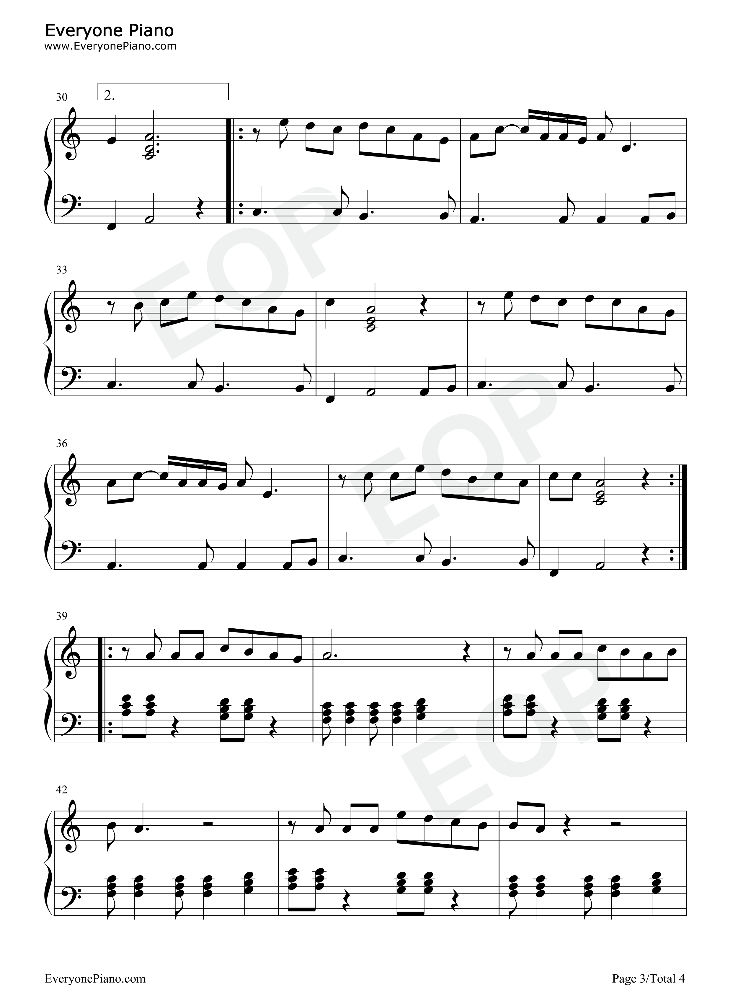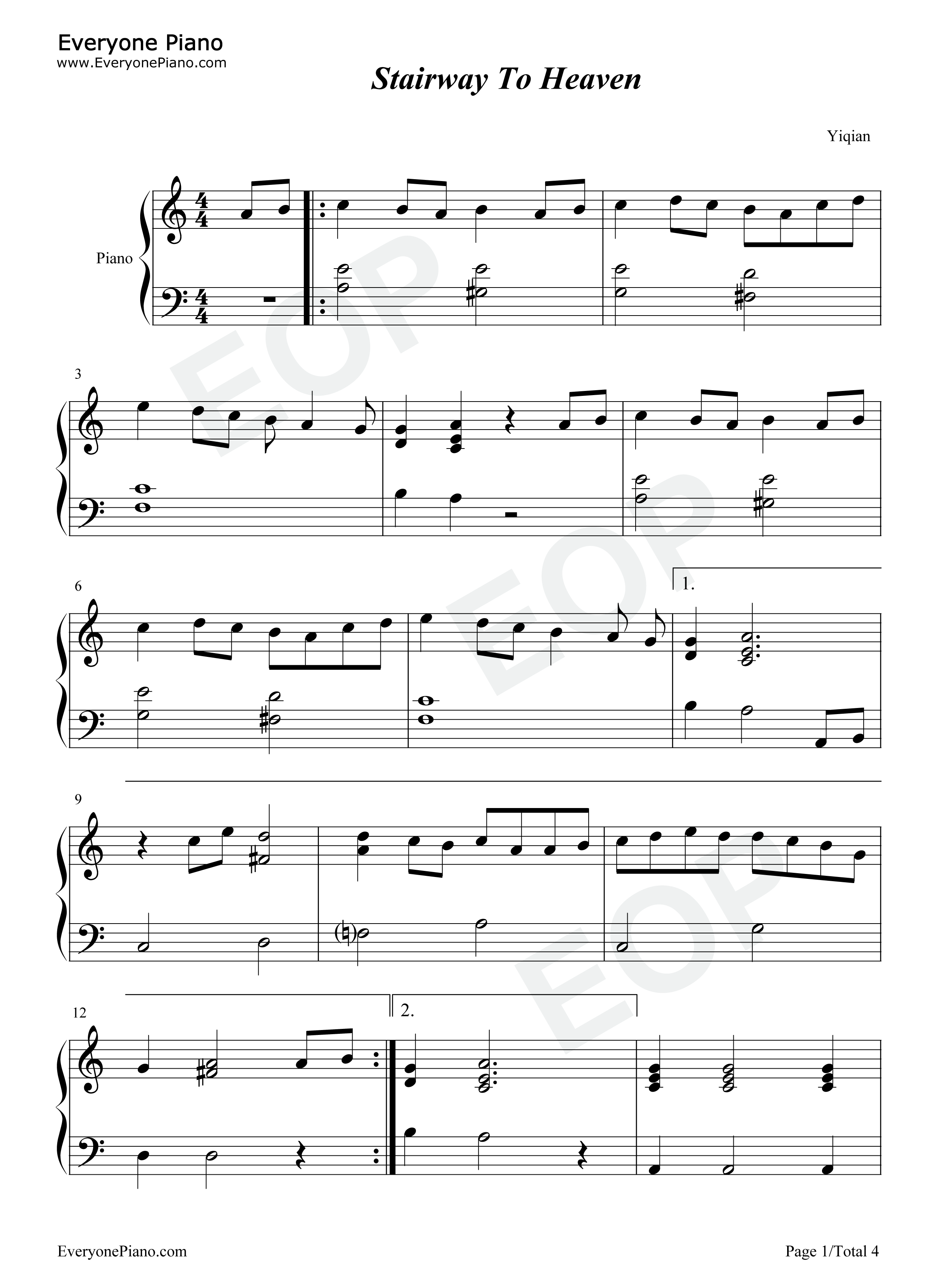 是Led Zeppelin的巅峰之作,也堪称世界摇滚史上的神作。此曲收录在Led Zeppelin的第四张专辑《Led Zeppelin IV》(1971)里,由Jimmy Page(吉米-佩奇)和Robert Plant(罗伯特-普朗特)创作。2004年《Guitar World》杂志评选的100 Greatest Rock Guitar Solos中排行第一。《滚石》杂志的编辑这样评价道,“如果一个时代所有的经典摇滚作品要被浓缩成一首歌,那这首歌很可能就是《Stairway To Heaven》,自从1971年发行以来,电台里播出这首歌的次数已经难以计数,而且直到今天,都没有减少的迹象。” 整首歌曲从慢到快,从轻到响,最后复归与平静,led zeppelin把整首歌演绎得出神入化,情绪控制也恰到好处,jimmy page的solo更是为这首歌添上了精彩的一笔! 歌词下方是Stairway to Heaven钢琴谱,希望大家喜欢。 Stairway to Heaven歌词: There"s a lady who"s sure all that glitters is gold(有一位姑娘她相信闪光的都是金子) And she"s buying a stairway to heaven(她想买一架通往天堂的阶梯) When she gets there she knows if the stores are all closed(她明白即使商店都已关门) With a word she can get what she came for(只要轻启朱唇她就能得到所要的东西) Ooh ooh and she"s buying a stairway to heaven(她想买一架通往天堂的阶梯) There"s a sign on the wall but she wants to be sure(墙上分明有告示但她却想打听确实) "Cause you know sometimes words have two meanings(因为你知道有些词一语双关) In a tree by the brook there"s a songbird who sings(在溪边的树上有只鸟儿在歌唱) Sometimes all of our thoughts are misgiven(有时我们所有的想法都值得重新思量) Ooh it makes me wonder(这使我迷茫) Ooh it makes me wonder(这使我迷茫) There"s a feeling I get when I look to the west(眺望西方一种感觉油然而生) And my spirit is crying for leaving(我的心灵哭喊着想要离去) In my thoughts I have seen rings of smoke through the trees(我臆想树林中烟雾袅绕) And the voices of those who standing looking(伴随着那些眺望者发出的呼喊) Ooh it makes me wonder(这使我迷茫) Ooh it really makes me wonder(这真的使我迷茫) And it"s whispered that soon(消息会被迅速地悄声传开) If we all call the tune(如果我们也有掌调的机会) Then the piper will lead us to reason(吹笛人会为我们指点迷津) And a new day will dawn for those who stand long(新的一天为那些坚守许久的人们而破晓) And the forests will echo with laughter(森林也答以带笑的回音) Ooh If there"s a bustle in your hedgerow don"t be alarmed now(别惊慌如果灌木中传来喧嚷) It"s just a spring clean for the May Queen(那只是为五月皇后而做的春季扫除) Yes there are two paths you can go by(有两条路你可以选择) But in the long run(然而长远点说) There"s still time to change the road you"re on(你仍有机会改变现在的路) And it makes me wonder(这使我迷茫) Ooh Your head is humming and it won"t go(你脑袋嗡嗡作响经久不绝) In case you don"t know(因为你不知道) The pipers calling you to join him(那是吹笛人邀你与他同行) Dear lady can you hear the wind blow(亲爱的姑娘你能听见风起的声音吗) And did you know(你可知道) Your stairway lies on the whispering wind(你的天堂之梯就横亘在这飒飒风中) Ooh And as we wind on down the road(当我们沿路蜿蜒而去) Our shadows taller than our soul(影子高过我们的灵魂) There walks a lady we all know(一位我们熟悉的姑娘走来) Who shines white light and wants to show(她闪烁着白光要我们知道) How evrything still turns to gold(怎么把世间万物变成金子) And if you listen very hard(如果你细心聆听) The tune will come to you at last(你最终会听到那曲调) When all are one and one is all yeah(当万物合一一即万物) To be a rock and not to roll(你就会成为磐石岿然不动) And she"s buying a stairway to heaven(她想买一架通往天堂的阶梯) |