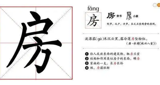 房姓读fáng。 房姓简介 房姓,因房氏源自于五帝之首的尧,传承相对单纯,流向清晰,且其后代中大唐开国宰相房玄龄为“中国十大贤相”之一,故在史上向为望族。清河房氏为邢台市古代十大名门望族之一。并有“天下房氏,无出清河”之说。 房姓来源 1."房"姓诞生于距今约4300-4700年前,起源于祁姓,出自陶唐氏,是尧的后代,以国名为氏。 2.源于地名,出自春秋时期出国之邑房渚,属于以地名为氏。 3.源于职业,出自春秋战国时期工匠房,属于以职业称谓为氏。 4.出自少数民族改姓而来。南北朝时,北魏鲜卑族有屋引氏,入中原后改为房氏。 房的简介 房,普通话读音为fáng,最开始见于楚国简帛时代,六书中属于形声字。“房”的基本含义为住人或放东西的建筑物,如房屋;引申含义为储存财物的房屋,如库房。“房”字也用作正房前面两旁的房屋,如厢房。www.ws46.com 房的组词 房屋 [fáng wū] 固定于土地上可供住宅用或工作等的建筑物。 客房 [kè fáng] 供旅客住宿的房间 住房 [zhù fáng] 可以供人居住、生活或是工作的房子。 房间 [fáng jiān] (名)房子内分隔成的各个部分。 |
