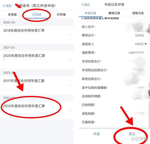 大家一方面需要做好2022年度的个税汇算申报事宜,另一方面也最好核查一下过往年度的填报情况,是否存在上述的一些问题,如果存在,需要及时改正。 5、目前来看,对于个税的稽查正在不断趋严。建议大家掌握一些必要的个税知识,做好涉税风险防范。尤其对于高收入、高净值等重点稽查对象而言,更是需要妥善、合规处理好各项涉税事宜。(www.ws46.cOm) 另外,大家还反映说遇到了一些漏报信息、信息填报错误、退税审核不通过等需要更正或修改申报信息的情况,顺便在这里说一下上述问题的具体操作流程,供大家参考。 1、第一种情形:已经进行申报,但未进行补缴税款或申请退税等操作,或已经完成申报,且已经补缴税款,或已经成功退税。 在这两种情形下,如果发现填报的信息有问题,需要更正或修改申报操作比较简单,直接进行“更正”操作即可,具体如下: