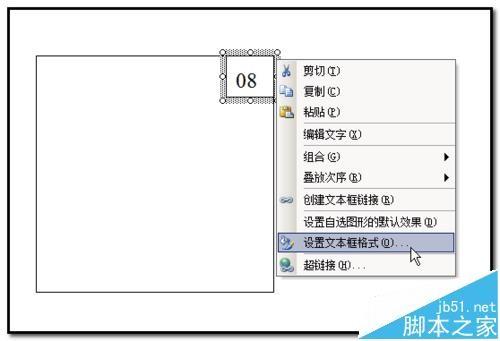 7、横文本框还保持着选中的状态,光标放在上面,鼠标右击,弹出的菜单中点“设置文本框格式”;