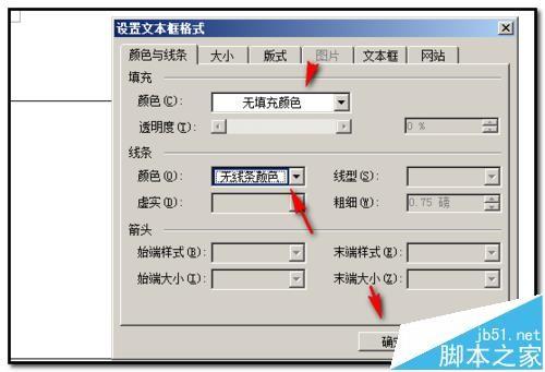 8、弹出的框中,把填充颜色和线条颜色都设置为无;再点确定。