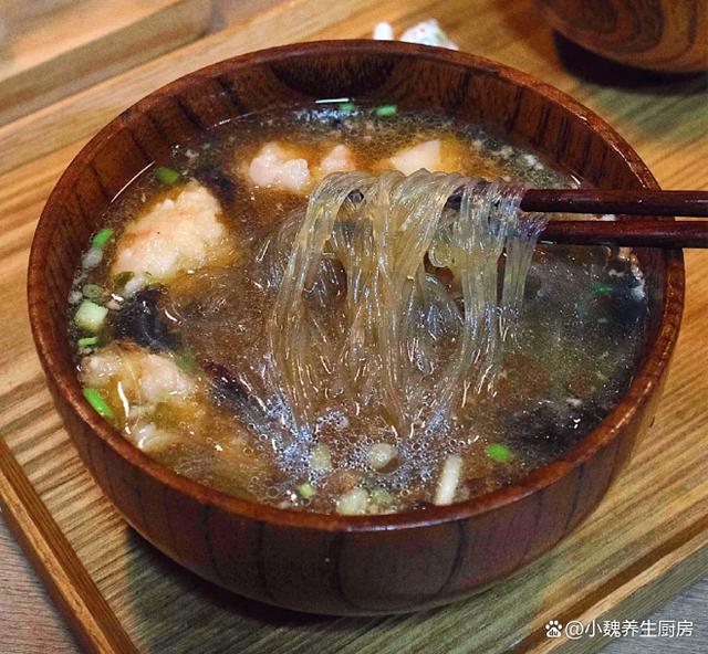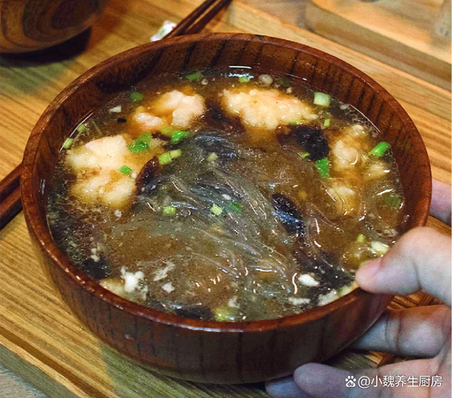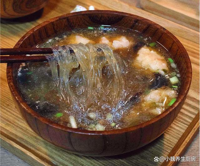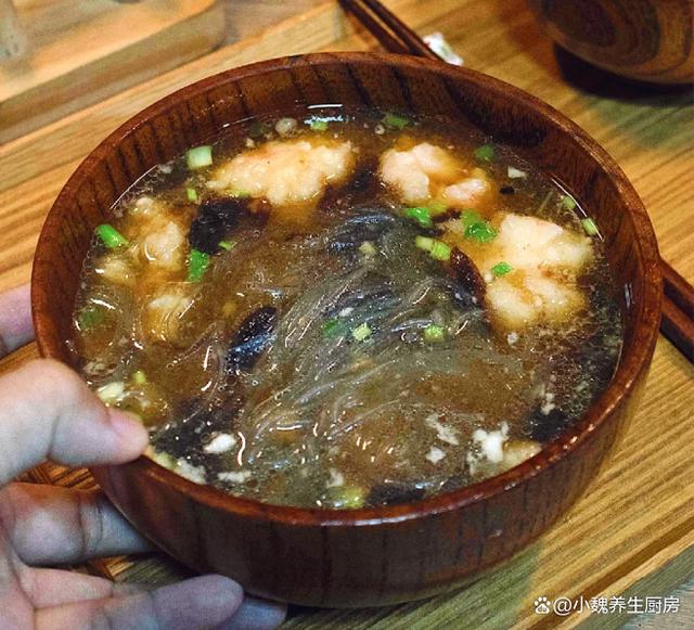 一晃眼时间就来到11月份的中旬,今年也接近尾声,冬季已经到来,入冬后天气随之改变,温度会直线下降,特别容易手脚冰凉,身体缺乏大量的营养。对于南方人而言,可以不吃大鱼大肉,但是每餐不能不喝汤,喝汤会更利于消化,暖身暖胃,对身体更有好处。最近气温骤降,可以给家里人尝一尝这款家常汤品——紫菜虾滑粉丝汤,食材非常简单,别不懂吃。入冬后,这汤要使劲吃!汤品鲜美,补充钙质,舒服度过今年冬天。  【紫菜虾滑粉丝汤的烹饪技巧】 选购一些食材:选购龙口粉丝一卷(龙口粉丝是一种很受欢迎的食材,选用绿豆和淀粉来制作而成,粉丝晶莹剔透,粉丝的口感非常好),新鲜香葱若干个,大蒜和生姜少许,食用油和猪油若干,冷水和温水若干,紫菜少许,选购新鲜大虾300克左右(大虾的虾肉非常肥美,口感非常鲜嫩,大虾可以做成虾仁,我们家孩子喜欢做成虾滑,虾滑的口感特别Q弹,让汤品更鲜美),少许食盐,生抽少许,一勺香醋,胡椒粉和食盐若干,其他。