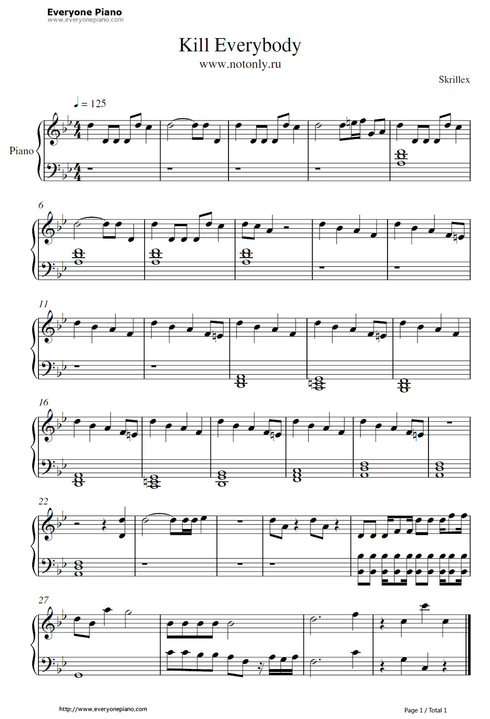歌词下方是Kill Everybody钢琴谱,欢迎大家使用。 Kill Everybody歌词: I want to kill everybody in the world! L O V E L o V e, oh.. I want to eat your heart! I want to kill everybody in the world! L O V E L o V e, oh.. I want to eat your heart! I want to kill everybody in the world! [Sycho Instrumental Substep] I want to kill!(www.Ws46.com) .. I want to kill everybody in the world! L O V E L o V e, oh.. I want to eat your, want to eat your... I want to kill everybody in the world! .. I want to kill! .. I want to kill! I want to kill! I want to kill! I want to kill!