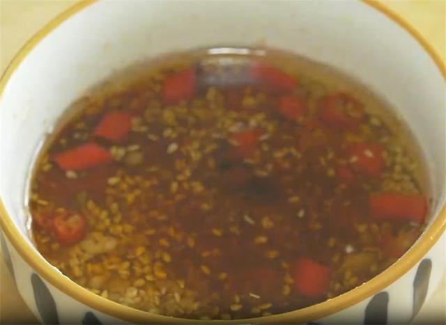 3.碗里加入两勺辣椒面,两勺孜然粉、半勺花椒粉,适量的白芝麻、小米辣直接剪成圈,再来点蒜末,烧至冒烟的热油浇在里面,加入一勺生抽、一勺香醋,一勺白糖提鲜,一小勺盐,再来点香油增香。