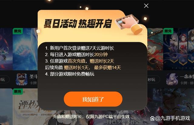 很多玩家都是想要去随时随地的体验游戏,而免费游玩云游戏的平台就能为大家去实现,像九游这种的就很不错,不仅非常的便捷,同时支持的游戏种类也多,让玩家可去快速的解锁喜欢的作品,一键实现秒完,大家若是对于此感兴趣的话,那么就一起来接着往下看看吧。 其实想要去实现云游戏的试玩,九游还是非常合适的,因为在里面大家能够见到许多热门的游戏作品,同时还有年度的新游推送,助力玩家到时候获得一个更好的体验。 此外该云游中的作品种类超全,点击即可试玩,至于具体的试玩时长等也能在对应的界面中一目了然,让大家使用它的时候,能够清楚的知晓自己的试玩记录等关键信息,方便自己快速进入喜欢的游戏。 关键就在于大家现在去使用的话,还能得到很多的福利,比如首次登陆的时候,大家就能得到7天的免费试用,且每日进入游戏都会有20分钟的时长赠送,关键就在于针对任意游戏的首充,都能得到赠送的2天时长哦。