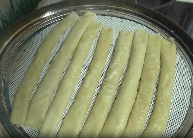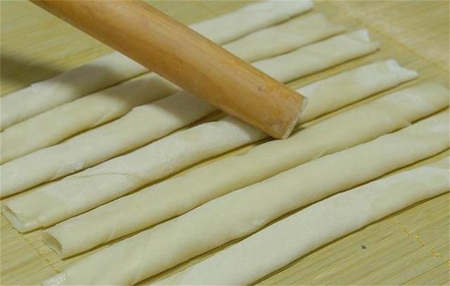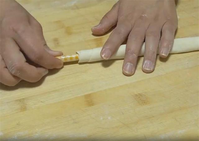 4.用一根筷子从一头卷起来,再把筷子抽出来,这样依次把所有的面剂都处理好。