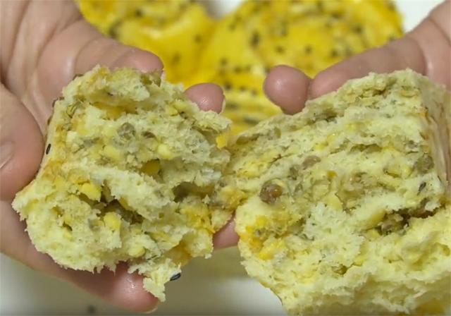 9.金灿灿的面包看着就超有食欲,取下保鲜膜再把它倒扣出来,这样蒸出来的蜜豆面包特别的蓬松暄软,比烤箱烤的水分含量更高一些,好吃还不怕上火,里面是绿豆和黄豆做的蜜豆馅料,咬一口浓浓的豆香味,香甜可口。 |