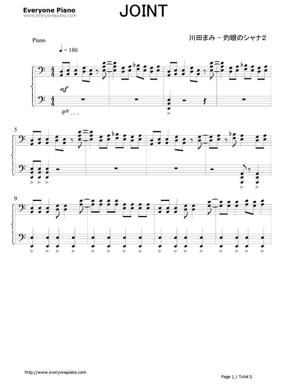 是I"ve歌姬川田まみ(川田麻美)为大人气TV动画《灼眼的夏娜Second》 演唱的片头曲。作为川田麻美本人同《灼眼的夏娜》系列第三次合作的产物,《JOINT》依旧是由川田麻美本人填词,并再度请来善于将浓重的摇滚风与I"ve象征性的电子乐结合在一起的中泽伴行与尾崎武士参与制作,从而被业界评价“更好地将《夏娜》原本带有的魔幻氛围展现出来”,为《灼眼的夏娜Second》最先添上了大气磅礴的一笔。 JOINT作为单曲碟在2007年的10月31日进行发售之后,其销量取得了前所未有的良好成绩:在日本公信榜上最高曾取得第九名,这既是川田麻美第一次进入公信榜前十名,也使得身为I"ve一员的麻美成为了继同门师姐KOTOKO之后第二个在公信榜前十名中崭露头角的歌姬,麻美本人也在得知个消息后,亲笔写下了文字以表达自己的喜悦和对歌迷与制作人员的感谢。此外在I"ve Sound Explorer的2007年年度人气歌曲投票上,《JOINT》也是一举拔得头筹。《JOINT》在麻美事业路程上的重要性和纪念意义由此可见一斑。 歌词下方是JOINT钢琴谱,希望大家喜欢。 JOINT歌词: 再びる世界は と残像 淡い影 凛とした背中には その全てを背う悟がある どうしたいの? どうして? 孤独な旅 そうめたはずだったのに この手をさないで 君からわる思いから 心に眠るいが目める いの彼方 迷いない二人の姿がえる だからむの 更なるへ けてく景に 生きる事の奇を知る 特の意味求め 彷徨いく道なき道を 信じたいの 信じて 共に行くと そうめて欲しかったから 瞳をそらさないで うまく言にできないけど 胸の深く君を求めている 希望の遥か彼方 迷いない二人の姿がえる だからむの 次なる所へ 悔しさや悲しみが 今までそれ以上の喜びを教えてくれた そして、にいつも 必ず君という存在があるという事も 感じるでしょもう何も怖くなんてない この手を握りめて 君にしか出せない力が をにえてゆくから いの彼方 迷いない二人の姿がえる だからむの 更なるへ |