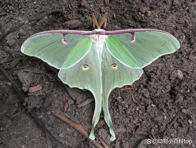 当婆罗门蛾蜕变后,展现出美丽的银色翅膀,配以奶油和黑色斑纹,翼展范围在90至160毫米之间。其翅膀的图案形如老虎眼,远远望去给人以极致震撼之感。 8、美洲月形天蚕蛾(颜色柔和、外型飘逸) 在飞蛾科中,天蚕蛾被认为是其中最迷人的品种之一,尤其以美洲月形天蚕蛾著名,又被称为月神蛾。这一品种的外表就如同其华丽的名字一样,充满优雅与美丽。美洲月形天蚕蛾身躯庞大,拥有淡绿色的翅膀,而后翅边缘则呈现出灰白色的色彩,翅膀上布满了多个透明的眼点和两条优雅弯曲的长尾巴。其翼展达到惊人的17厘米,是北美所有鳞翅目动物中体型最大的。