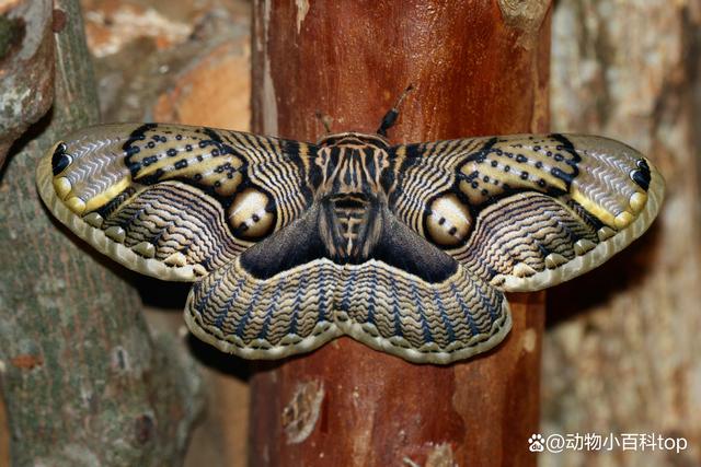 雄性和雌性月神蛾在外表上有一些显著的不同之处。一般来说,雄性的颜色较为浅绿,体型稍微比雌性小一些。雌性月神蛾拥有细长的毛茸茸触角,而雄性月神蛾的触角则呈现出羽毛状扇形。 9、乌桕大蚕蛾(世界最大的蛾、蛇纹图案) 乌桕大蚕蛾,又称皇蛾,被誉为世界上最巨大的蛾类之一,常列入十大飞蛾之中。这些华美的生物的前翅最长处可达25到30厘米,其翅膀的最大记录甚至广达400平方厘米。其身体主要呈现栗色,展开翅膀时,倒三角形的背翅花纹边缘犹如蛇头,其色彩绚丽华美,有时甚至超越了一般蝴蝶的美感。