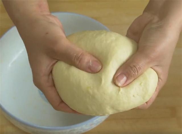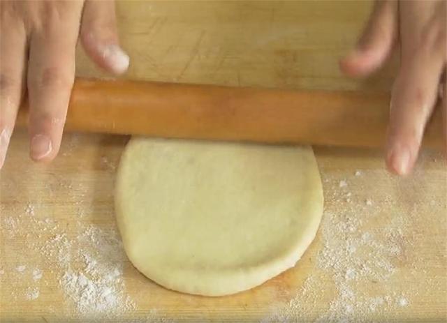 7.收口处一定要捏紧,多余的一点面可以揪下来,最后再擀成一个长形的饼子,这样饼胚就做好了。