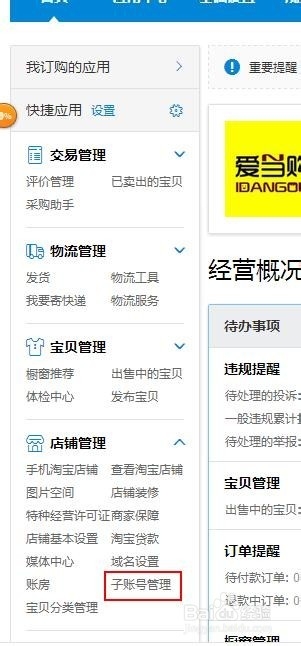 首先,登陆千牛电脑版本,进入卖家中心,首页下方右侧的菜单条中找到店铺管理-子账户管理,点击进入。第一次使用淘宝会给3个免费的子账户名额给卖家创建。