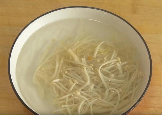 8.最后是金针菇焯水两分钟左右捞出来,也过一下凉开水。
