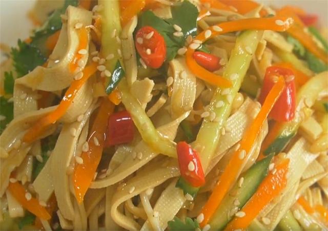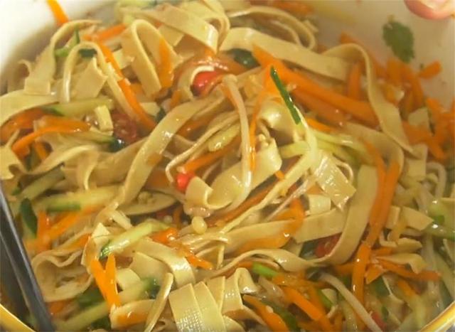 准备食材: 豆腐皮、胡萝卜、黄瓜、金针菇、大蒜、小米辣、白芝麻、花椒、食用油、生抽、香醋、味极鲜、白糖、盐、香油、香菜 具体做法: