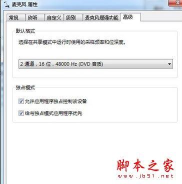 2、声音图标上右键–录音设备–麦克风–右键–属性。然后每个标签页的设置如下: