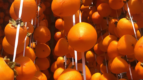 舌头刚触碰,糖霜就化了。入口外层紧实有嚼劲,里边果肉却比糯米糍还Q软,在牙齿间跳跃婉转,相当有趣~ 柿饼那么多,为什么选富平柿饼? 1、树尖上的阳光果,挑10分熟!