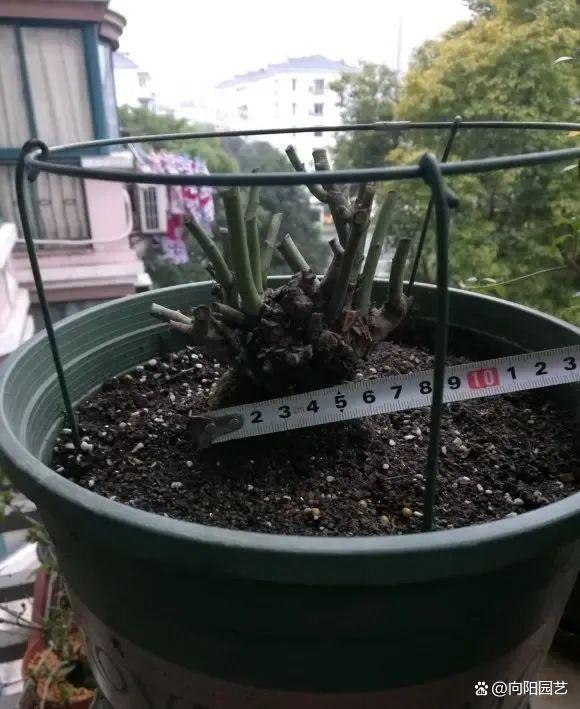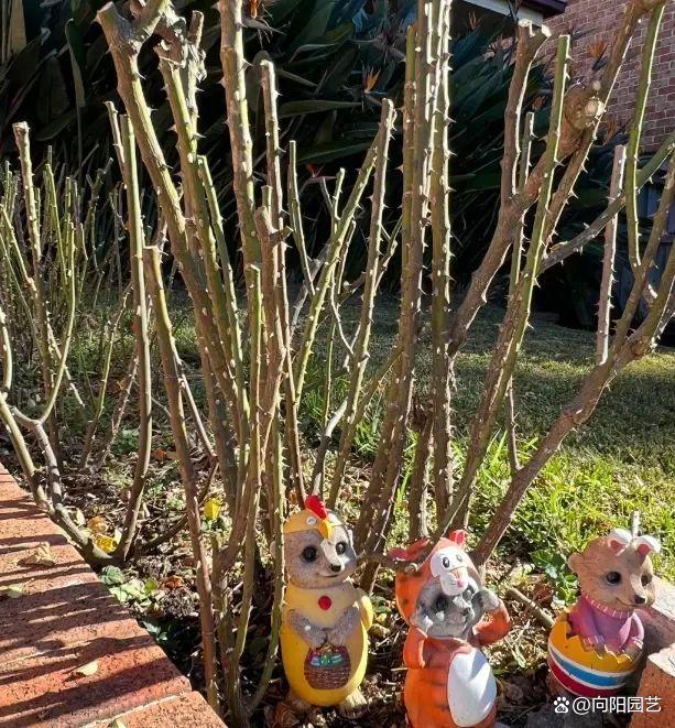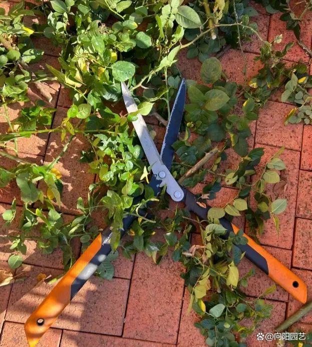月季的修剪非常简单,保留统一的高度,把顶端的枝条尤其是细枝全部都清理掉,还有主干这条底部的小细枝,长得跟牙签粗一样的枝条同样也是需要全部都清理掉的,留着没有任何作用,等到明年的春天,新的枝条又会重新生长出来,修剪的过程中注意不要被月季花的尖刺扎到手。