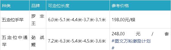 注:五定位鱼竿的特点是能定位五种长度,以上五定位鱼竿的价格仅供参考,请大家在购买时务必以实际的价格为准。