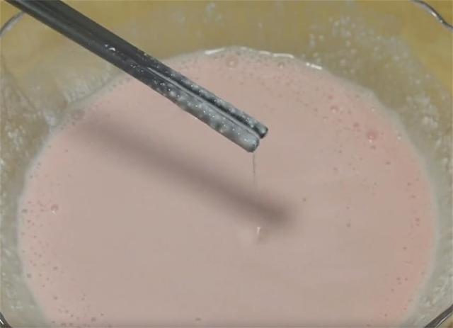 3.准备50克玉米淀粉,50克大米粉,150克豌豆淀粉,取250毫升打好的西红柿汁倒进去,多搅拌一会儿,搅拌到没有干粉颗粒就可以了。