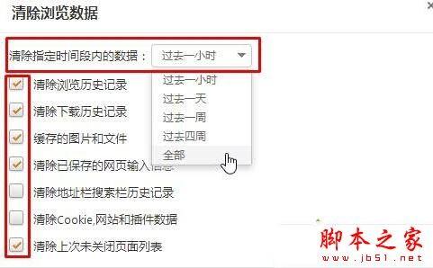 2、在【清除地址时间段内的数据】下拉菜单中选择需要清除时间段的浏览痕迹,然后在下面勾选需要清理的项目,点击【立即清理】即可。