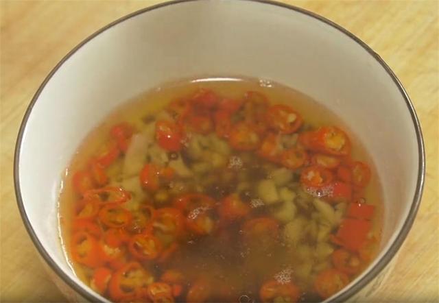 5.咱们今天再加一个步骤,适量的大蒜切成末,小米辣切成圈,用烧到冒烟的花椒油浇在里面激发出香味,加两勺生抽、一勺陈醋、一小勺白糖、适量的盐。