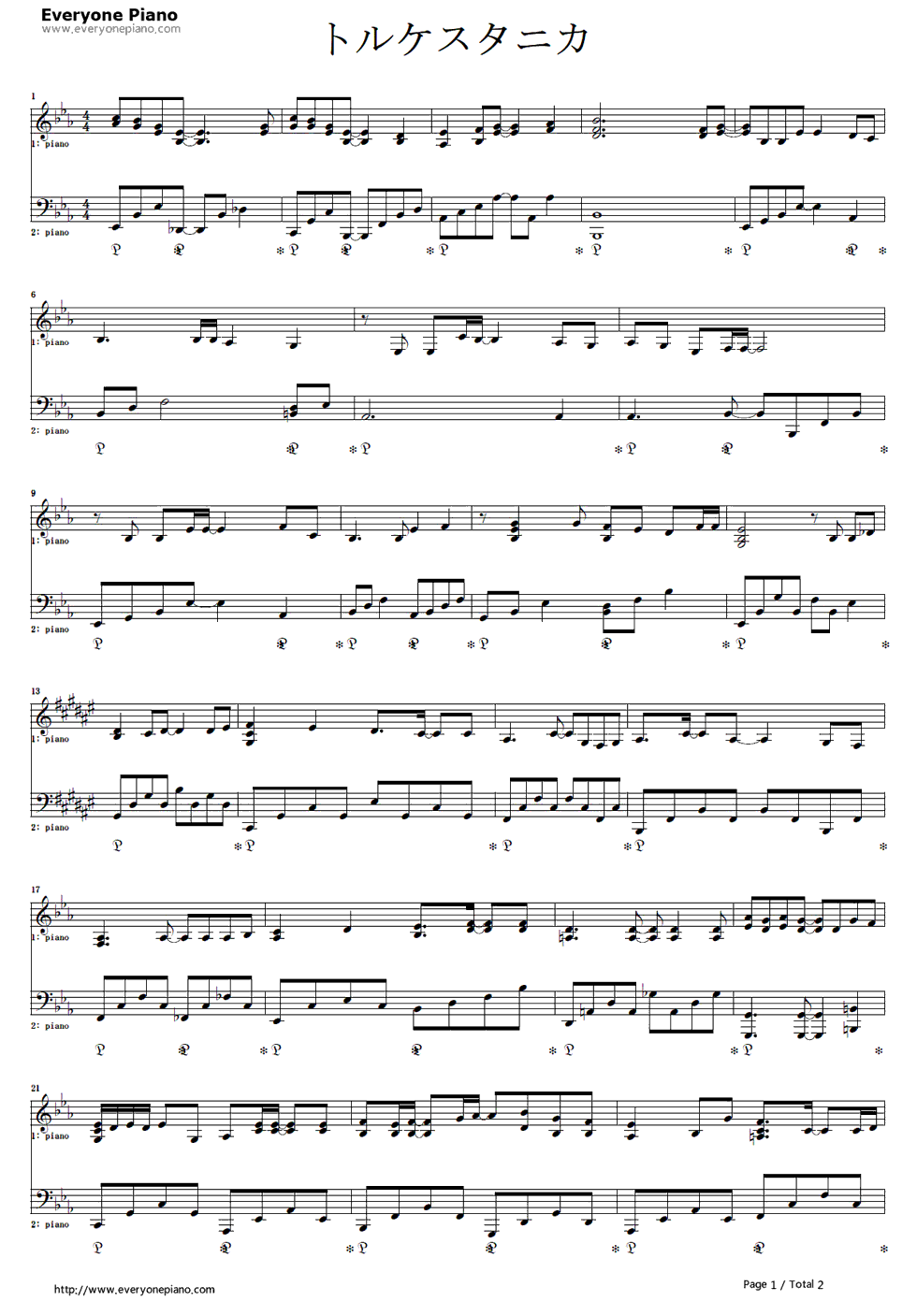 歌词下方是トルケスタニカ钢琴谱,欢迎大家使用。 トルケスタニカ歌词: 手紙が僕に届いた よく見る文字と名前で 覚悟はいつもしてた はずだったけど... 今までにさ 見た事無い笑顔を見せる君に 遂に言えなかった言葉が 僕を締め付けた せめて遠い場所で君が一人で泣かない様に静寂を包み込む歌を歌うよ 二つ並んだ スピーカーの向こうでさ どうか微笑んで 今頃君は遠くで 幸せな顔をしている そんな想像ばかりを 膨らますんだ あの時にさ 募る思い 君に打ち明けたら... そんな後悔も消える程の 愛を願います 君の幸せの形が果てまで続く様に 街中に響く様な歌を歌うよ 二つ揃いの 指輪を重ねて どうか微笑んで あの日の手紙の返事... 欠席に印を付けて 白いトルケスタニカと 一緒に送ったよね 君の純白の衣装に合わせた色の花は「失恋」の意味を持つ僕の思い出 せめて綺麗と笑って欲しいから 最後に君の 幸せの形が果てまで続く様に 街中に響く様な歌を歌うよ 二つ並んだ スピーカーの向こうでさ どうか微笑んで |