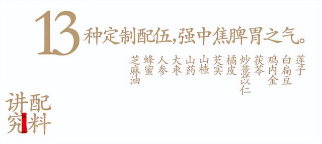 不光如此,还添加了多种健脾养胃的食材,像是怀山药,莲子,山楂,薏米,鸡内金,麦芽,砂仁,陈皮等,而且这款八珍糕为了满足大多数人的的体质,还是0糖的,不能吃甜的朋友也可以安心食用。