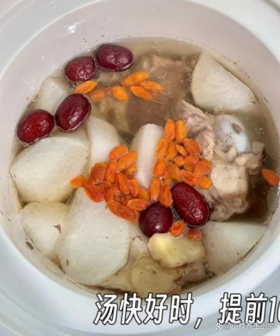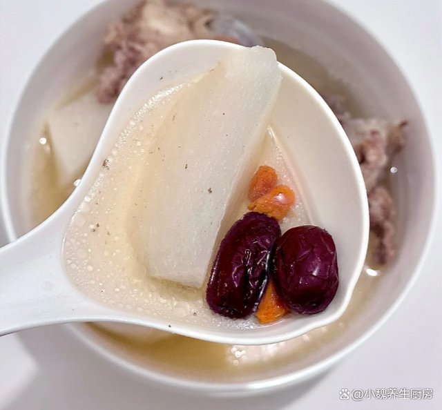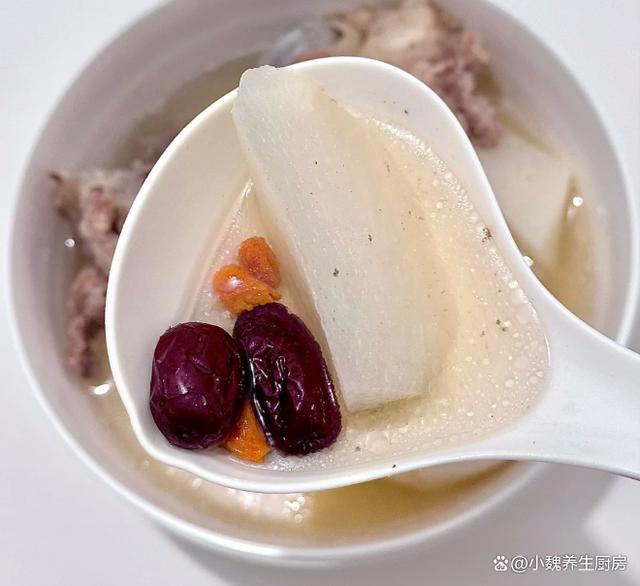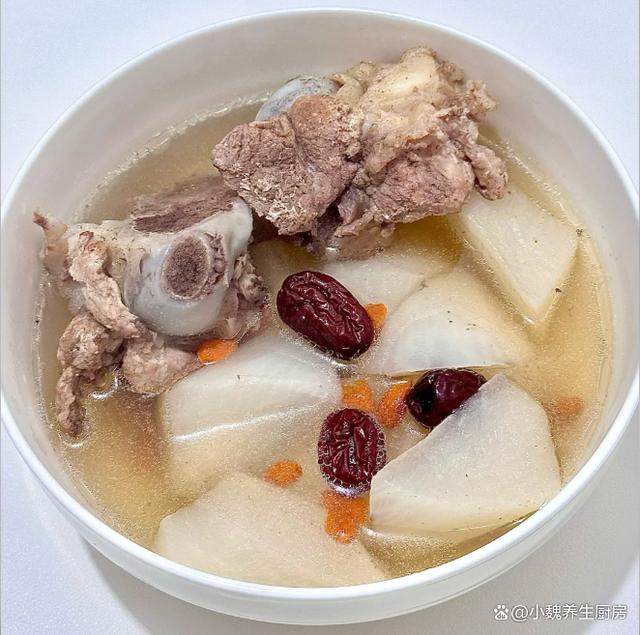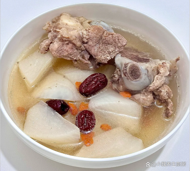 5:大火转中小火炖煮,需要炖煮45分钟,让食材全部炖熟,最后放入枸杞子,滴入香油,加上少许胡椒粉和食盐即可,将汤品都调配入味,撒上葱花即可,开吃。 白萝卜红枣筒子骨汤的食用禁忌:首先,对于体质偏热、易上火的人群来说,这道汤中的红枣与筒子骨可能加重体内热气,导致口腔溃疡、便秘等上火症状。因此,这类人群在食用时应适量,或选择与其他寒性食物搭配,以平衡体内阴阳。 总之,白萝卜红枣筒子骨汤虽好,但并非人人皆宜。在食用前,我们应充分了解自己的体质和健康状况,遵循科学饮食原则,合理搭配食材,以确保营养均衡、身体健康。白萝卜红枣筒子骨汤是冬天最该喝的汤品,白萝卜和猪骨是天生一对,汤品特别鲜美甘甜,筒子骨里都是骨髓,营养价值全面,促进各种营养的消化,还可以缓解食欲不振,暖胃又健脾,让你舒服度过今年冬天。 来源: www.ws46.com 各位网友们,你们是否掌握这款白萝卜红枣筒子骨汤的烹饪技巧吗?(文中的配图都出自网络)