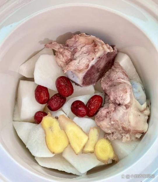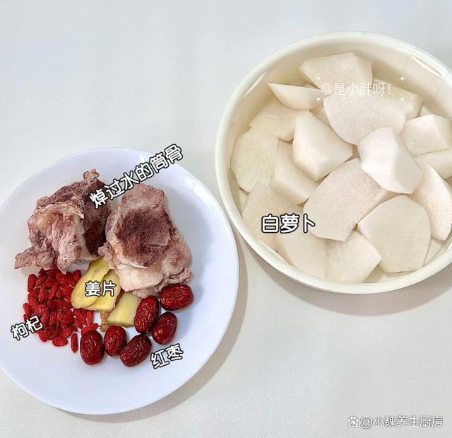到了寒冬十一月,正式进入新的一个月,立冬标志着冬天的来临,冬天的气息越来越浓郁,天气会逐渐变冷,甚至出现恶劣的天气,这个时候季节更替,让身体出现亏虚,气色不足,很难顺利度过今年冬天。冬天是一年最后的时刻,冬天要记得增添衣物,常喝一些暖和和的食物,比如说粥品或汤品。冬天是白萝卜上市的时候,经过打霜后的白萝卜更甜,搭配筒子骨是绝配,简单炖一锅,汤品鲜美倍增,别不懂吃。入冬后,白萝卜和它是绝配,汤品鲜美,补足营养,舒服度过冬天。  【白萝卜红枣筒子骨汤的制作技巧】 挑选一些食材:选购新鲜的白萝卜两个(白萝卜是冬天最受欢迎的蔬菜,生长在土里,外皮和果实都为白色,掐起来水分很足,吃起来白萝卜更加清甜,是用来煲汤的不二选择),几个大红枣,生姜一大块,枸杞子少许,900克新鲜筒子骨(筒子骨是猪骨之一,骨头里富含多种微量元素,骨髓含量非常丰富,搭配玉米,莲藕和萝卜煲汤是绝配),少许冷水和温开水,半勺胡椒粉,食盐若干,几勺料酒,若干根小葱,其他。 正确做法: 1:提前挑选好白萝卜,筒子骨和红枣等食材,先把生姜都洗净,去皮后切成薄片,香葱洗净切成葱段,几个大红枣都洗净,去掉里面的果核,放在碗中备用。2:提前把白萝卜都洗干净(主要是去掉表面的泥土),削皮后切成滚刀块,放在碗中备用。3:将枸杞子都洗干净,筒子骨提前处理成块,筒子骨用冷水浸泡出血丝,筒子骨放在锅中,加上葱段,姜片和少许料酒,记得要冷水下锅,让猪骨去腥处理,准备好白萝卜和猪骨等食材,开始烹饪这道白萝卜红枣筒子骨汤。 4:准备煲汤的汤锅,其中放入筒子骨,白萝卜,红枣,生姜片和葱段,加上温开水850毫升左右。