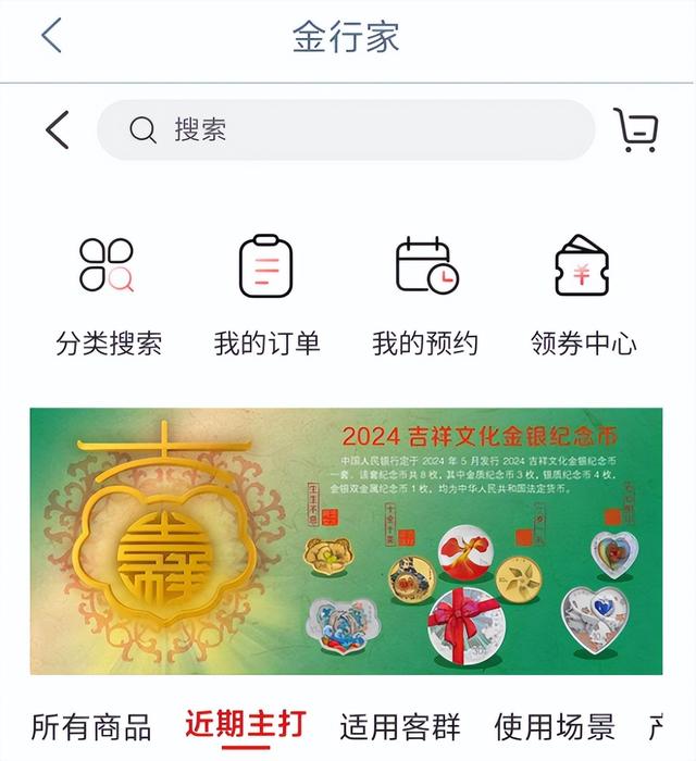 在搜索结果中,点击进入。进入页面后,就能在页面的显眼位置,看到吉祥文化纪念币的页面。