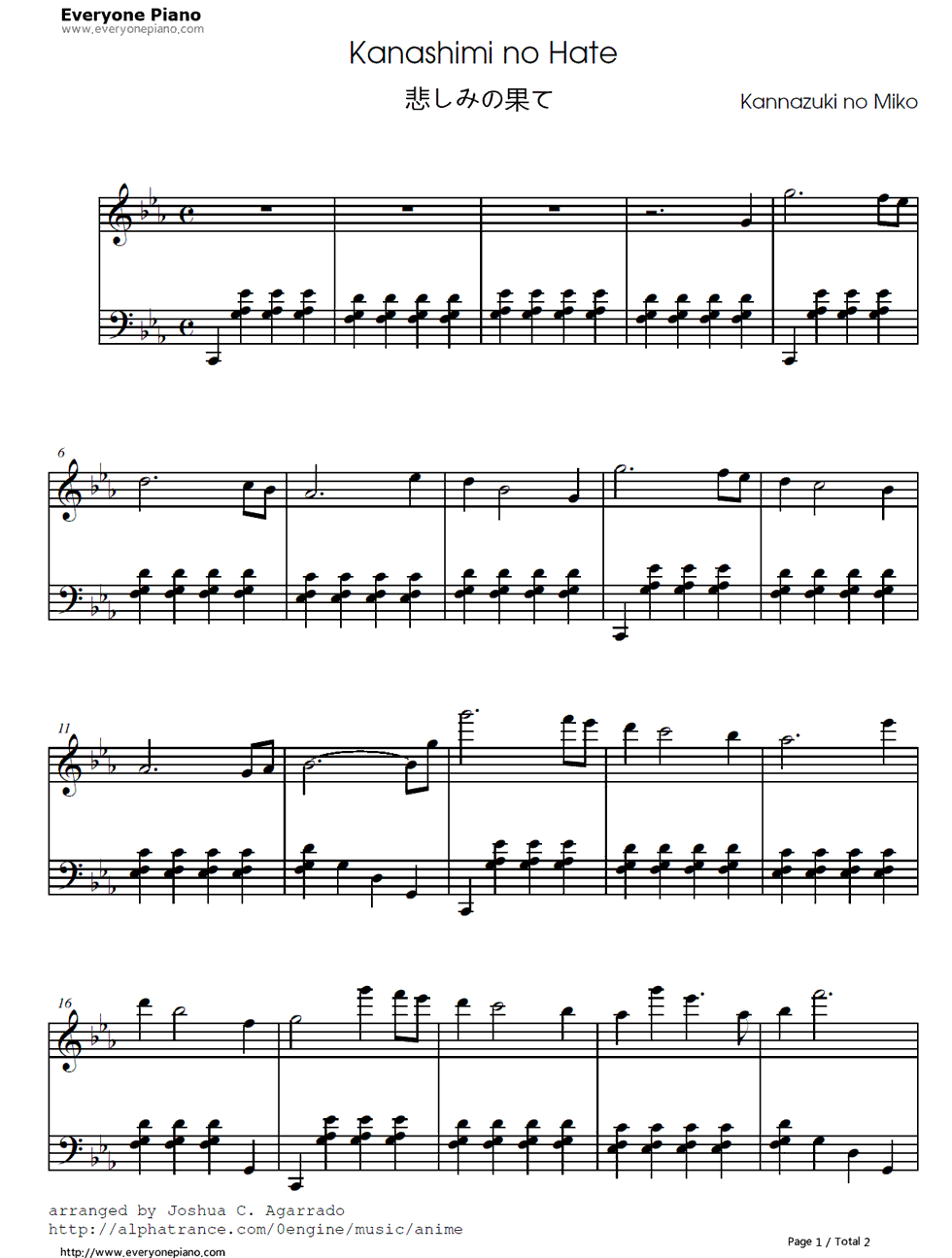 下方是悲しみの果て钢琴谱,欢迎大家使用。 |