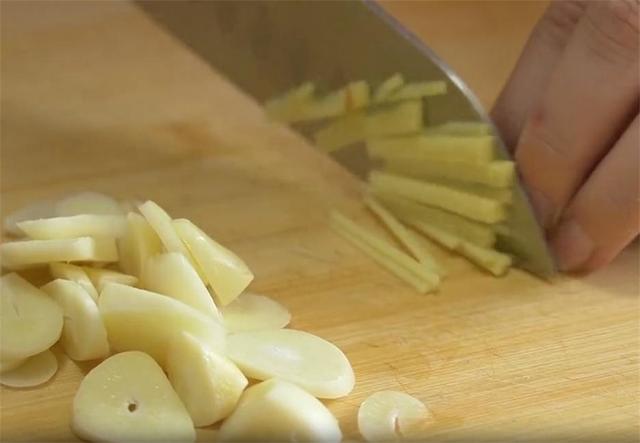 2.准备几瓣大蒜,切成片,生姜切成丝。