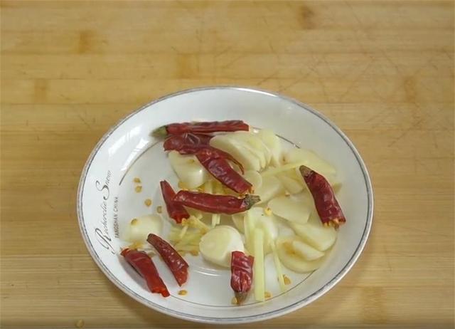 3.青红椒各一个,去籽以后切成片,几个干辣椒直接用手掰成段。