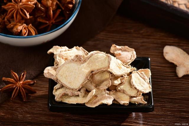 新鲜生姜洗净后用微火烘干,或是切成片后晒干,就可以制成干姜。 干姜味辛、热,其,非常适合有症状的中老年人使用。