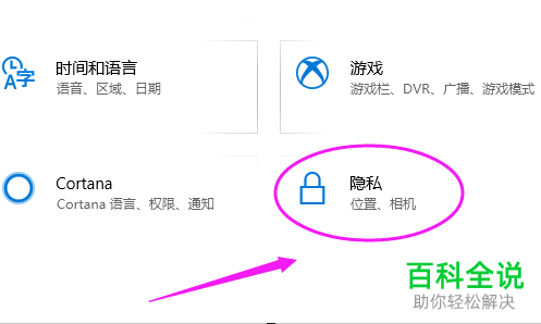 3. 第三步打开【设置】窗口后,根据下图箭头所指,点击【隐私】选项。