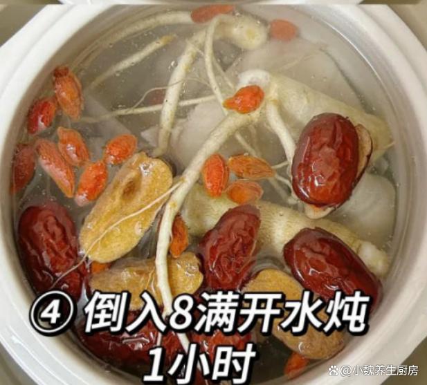 第六:提前准备好煲汤的器皿,放入焯水好的鸽子肉,然后放入山药,人参,红枣和姜片,加上纯净水若干,大火煮开后撇去浮沫。 第七:转至中小火继续炖一炖,让鸽子肉都炖到软烂,最后放入枸杞子,加上一丢丢胡椒粉,最后加上食盐,把汤品迅速搅动,滴入香油,焖煮一小会儿即可,开吃。 人参山药红枣炖鸽子汤是寒冬必喝的汤品,冬天天气太冷了,气色会非常差,可以尝一尝这款汤品,滋补养人,补血补气,增强我们身体体魄,冬天少生病。 各位网友们,你们是否喜欢喝这款人参山药红枣炖鸽子汤呢?(本文的配图都出自网络)