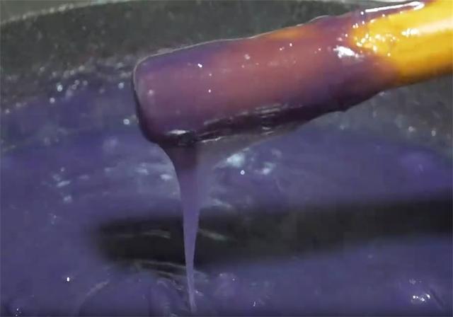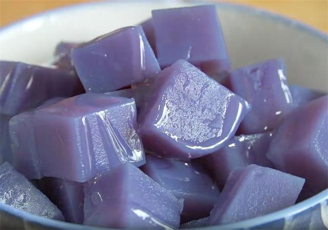 7.这就是已经完全成型的紫薯凉糕,可以直接倒扣出来,再切成小方块,撒上糖粉或者淋上点蜂蜜就可以开吃了,这样用豌豆淀粉做的紫薯凉糕,口感特别Q弹,冰冰凉凉的,比只用淀粉做的更好吃,也更营养。 |
