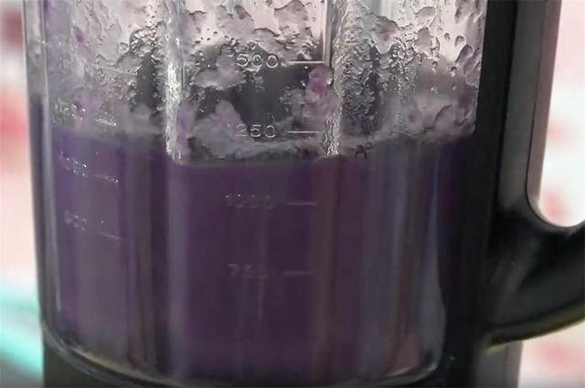 2.稍微放温以后倒入料理机,再加入500毫升清水,把它们打成细腻的紫薯糊。